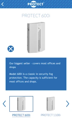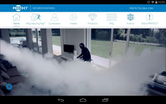 The exciting PROTECT app details how unbeatable and effective security fog is in combating burglary, vandalism and robbery. With security fog installed, the protected rooms and valuables are secured in seconds. This app can be used by anyone who wishes to protect their valuables in a very simple and most effective way - this is because the criminal 'cannot steal what they cannot see!'