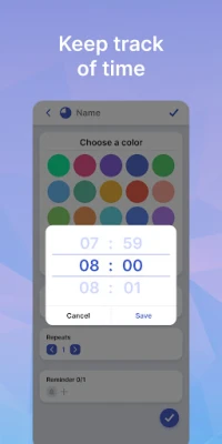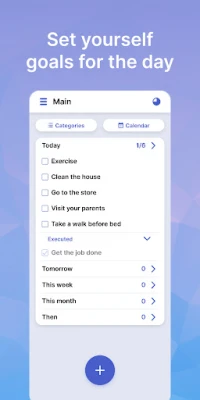 The app offers a user-friendly interface that allows you to quickly add new habits and change their settings. You can set a schedule for each habit, selecting days of the week and times to help you plan your activities efficiently. Notifications will remind you of upcoming tasks so you don't forget your goals.