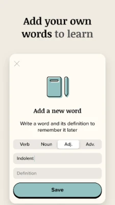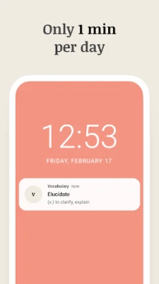 - Learn new words with minimal time investment, simply scrolling through your phone